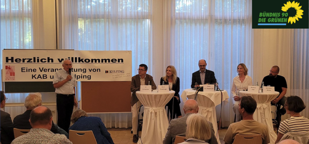 Die KAB und Kolping luden zum Polittalk zur Oelder Bürgermeisterwahl ein und über 130 Besucher fanden sich im Bonhoeffer Haus ein und wurden nicht enttäuscht. Auch die klare Positionierung von KAB und Kolping, der AFD keine öffentliche Bühne zu bieten, wurde mit lautem Applaus breit unterstützt. Die Profile der vier Kandidat:innen können unterschiedlicher nicht sein: Hermann Wiebe, ein parteiloser Kandidat ohne Programm, Ambition und Vision. Uli Schwieder ein Ex-Grüner der die große Bühne als Newcomer mit kaum politischer Erfahrung betritt. Die amtierende Bürgermeisterin, die mit Amtsbonus und einhergehendem Fachwissen routiniert ihr Programm abspult, aber keine neue auf Zukunft getrimmte Vision parat hat. Und natürlich Barbara Köß, die dem Bürgermeisteramt eine neue Ausrichtung und Gestaltungswillen geben möchte. Die Unterschiede hinsichtlich konkreter Meilensteine für die konkrete Gestaltung der Zukunft unserer Stadt, wurde an vielen Stellen sehr deutlich.